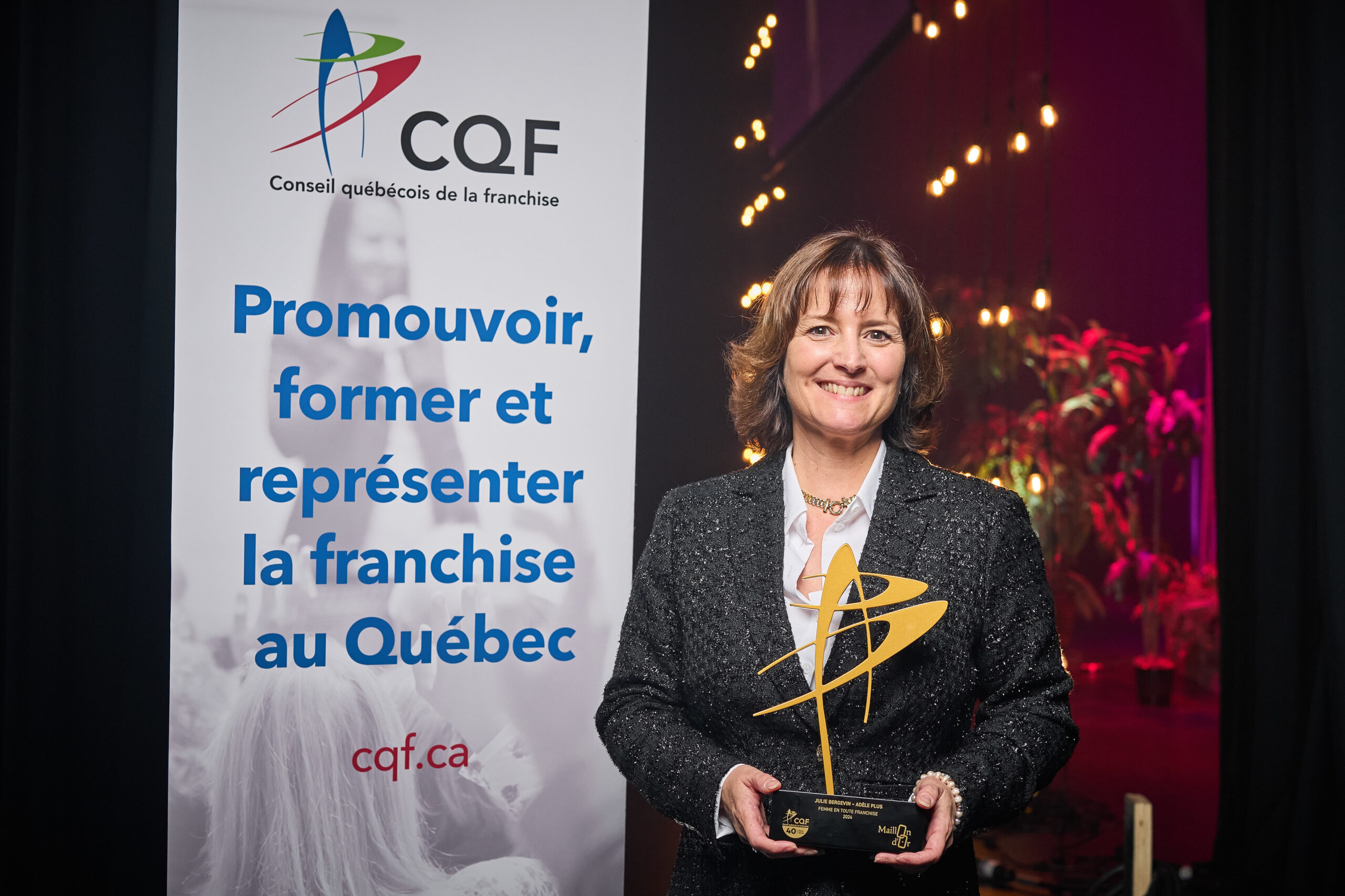 At the Gala Maillon d’Or, Quebec’s premier franchising event, Julie Bergevin, Vice-President of Groupe Adèle, was presented with a ‘Tribute’ Maillon d’Or in the ‘Women in Franchising’ category.