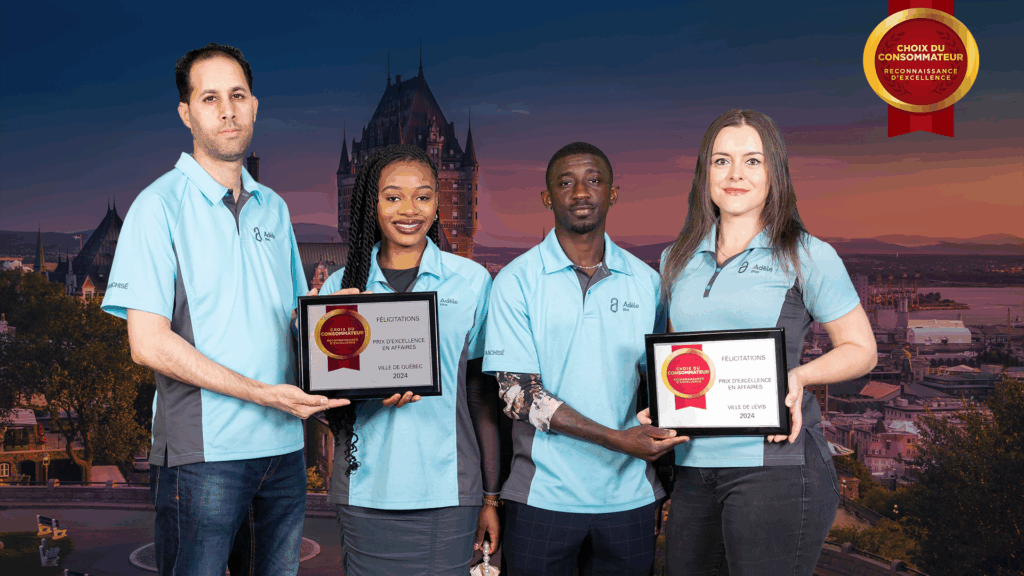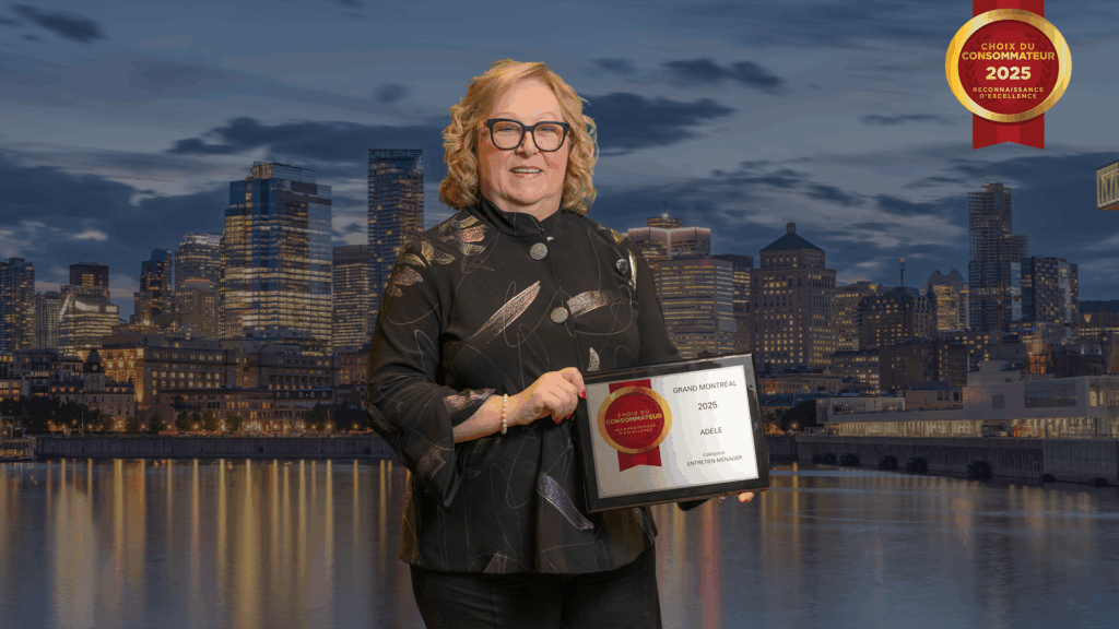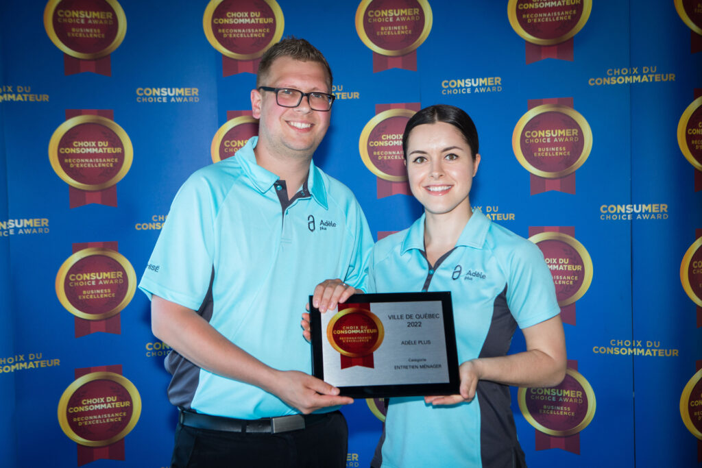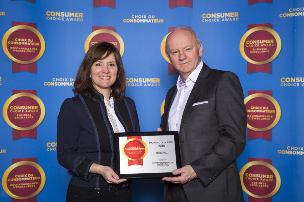 Adèle est déclarée année après année comme la MEILLEURE entreprise partout au Québec dans la catégorie Services d’entretien ménager. Depuis 2010 et de façon ininterrompue depuis Adèle se voit accorder le Prix Choix du Consommateur qui reconnaît et encourage l’excellence commerciale au Canada.
