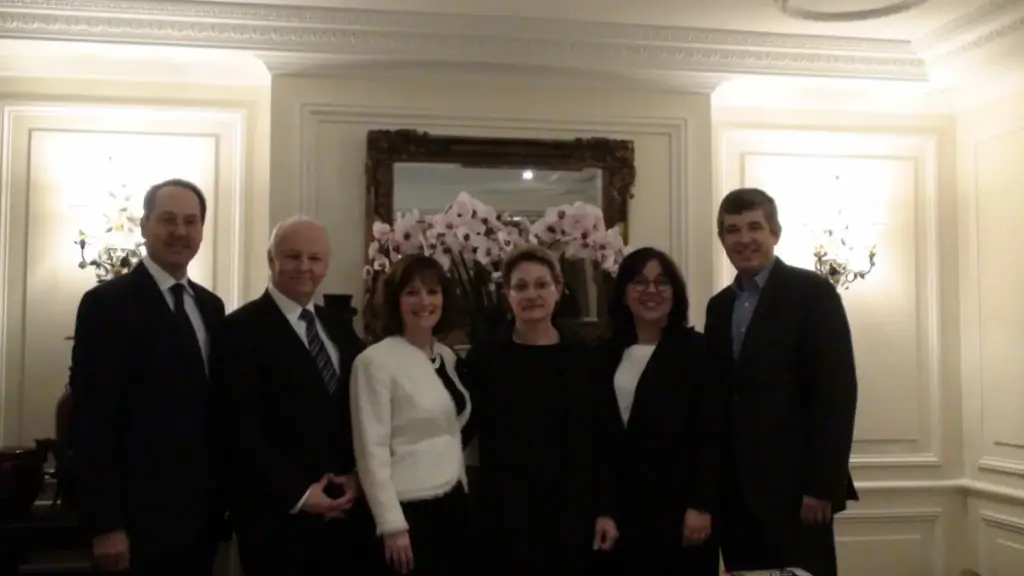 Sur la photo de gauche à droite; Daniel Cousineau, Gaétan Migneault et Julie Bergevin – Groupe Adèle, Mme. Corinne Pont – Franchisé Adèle France, Véronique et Stéphane Fabre – Adèle France.