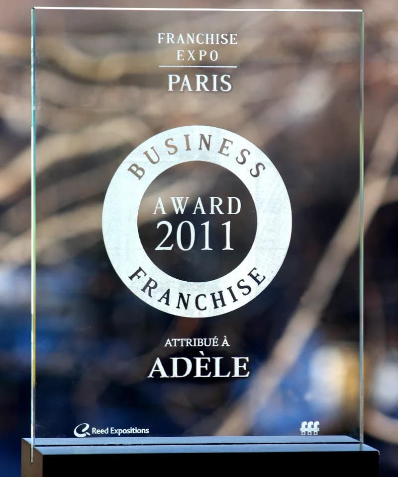 Adèle reçoit à Paris/France en 2011 le très prestigieux « Business Award Franchise ». Ce prix récompense un franchiseur pour « la qualité de son concept et pour sa pertinence en sol européen »